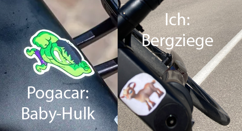 Auch im Profi-Sport wird dieses Prinzip oftmals genutzt. Beim Giro d´Italia 2024 hatte z.B. Tadej Pogacar einen Baby-Hulk-Aufkleber an seinem Lenker.