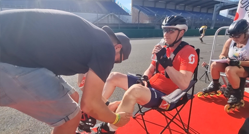 Mein Team in der Boxengasse – Andre und Dominik – blieb ruhig. Wir entschieden, nicht zum Rennarzt zu gehen, weil der mich sonst aus dem Rennen genommen hätte. Stattdessen: 50 Minuten Pause, eine winzige Schattenstelle, Atmen, Trinken, Sortieren. Und dann, leicht erholt: weiterfahren.